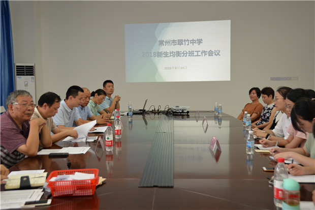 告别昨日的稚嫩,收拾行囊,即将迈入新的青春战场,新七年级的学子们,集结号吹响啦!作为一所新村学校,每一个孩子的入学自然牵动着每一个家庭成员的心,他们把新的希望寄予在新的起点上,铆足了劲,做好了融入、较量的充分准备! 而作为学校,面对学生和家长们的信任,自然责任在肩,努力为孩子们营造着最佳的校园氛围。翠竹中学积极响应教育局的号召,坚决推行教育公平,严格制定均衡分班方案,于 8月14日下午两点半在虹景校区四号楼一楼会议室如期召开2018新生均衡分班会议,教育局基教处戚宝华处长、责任督学蒯超英书记、翠竹中学周贵兴书记、吴栋校长、屠国斌副校长、丁文黎副校长、教导处、全体七年级班主任、天宁街道代表、七年级家长代表等共同完成了这场青春的集结。 教导处卫萍主任介绍了本次均衡分班的方案,同时向与会代表介绍了七年级强有力的班主任阵容。 屠国斌副校长介绍了均衡分班的前期酝酿流程,对各项分班的指标逐一作了清晰说明,分班名单由分班管理系统软件生成,班级总体差距极微,确保了绝对的均衡化、公平化。 首先由三位家长代表们按性别现场抽签决定十一位回常生的班级归属,教导处单斐副主任现场确认标记; 然后由责任督学和街道代表随意打乱八个班级的顺序,随机抽取并现场记录,确定各自班级相应的班会主任名单。 责任督学蒯超英书记、基教处戚宝华处长都对我校均衡分班的举措给予高度肯定,进一步提出“当起点公平的时候要思考如何做好过程公平”,建议我校一要认真研究好学生;二要承认学生差异,并拥抱差异;三要研究信息化教学;四要做好广泛宣传工作,让现场每一位代表都颇受启发。 号角已经吹响,站在同一起跑线上,挑战与机遇并存。青春齐飞扬,未来可期,梦想必成真!