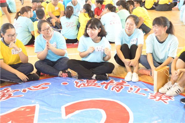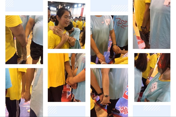 9月16日,江苏元德TP39团队走进翠竹中学,联合开展“播种希望,传递梦想”成长心连心大型公益活动。翠竹中学学生、家长及老师共有300多人参加本次活动。 周日,过渡校区体育馆人声鼎沸,热情喧腾,一抹艳丽的红色热情闪耀。同学和家长分别穿上专属自己的“阳光黄”与“澄净蓝”,在欢呼声中来到体育馆。欢快的音乐声中,老师、同学、家长及志愿者们手拉手、肩搭肩,围成一个圆圈或排成一条直线跟着音乐跑着跳着。 随后,来自五湖四海的TP39团队成员一一上台亮相,口号响亮,激情四射。教导处王爱晖副主任代表学校做了发言,并向江苏元德TP39团队的全体工作人员及义工们表示衷心的感谢。 整个活动由一个个的互动游戏串联起来。全体参与人员通过游戏“熊式打招呼”认识了身边的陌生人,拉近了彼此的距离。工作人员将参与者分成20个小组,组内成员互相了解,并在组长的带领下,手牵手完成“大圈小圈”游戏、“纸塔搭建”游戏。配合、协作、包容……众多道理,参与者在体验过程中有了真切的感知。 生活需要留白,生活需要思考的空间!“促膝谈心”的环节让孩子与家长有了静下心,找寻自己的机会。冥想后,即使是陌生人之间也愿意诉说与聆听。苦恼与难处,感动与期待,家长与孩子有的潸然泪下,有的陷入沉思。几位勇敢的学生与家长,走上舞台大胆的说出心中真实的想法。一个拥抱,一个“爸爸妈妈我爱你”拉近了孩子与家长的心。 在热烈的讨论后,小组成员们充分发挥团队合作精神,智慧碰撞出火花。共同设计了队名、队呼,展示小组才艺。唱歌、跳舞、朗诵,学生与家长共同配合,秀出最棒的团队。茫茫人海,相遇是缘。学生或家长戴上眼罩,互相搀扶着前行。搭档间互相指引,彼此依靠,就像是在茫茫人海中,因为父母师友的指引与帮助,因为手牵手同行,才能向更高更远的地方迈进。最后,在听完感人的《蓝丝带的故事》后,学生们分别将手中的蓝丝带赠与心中重要的人,或老师,或父母,或校长,或是为此次公益活动无私奉献的义工们。声声感恩的话语,一个个深情的拥抱,让在场的老师和家长们都感动得热泪盈眶。 一天的活动,家长、学生、老师面对面的互动,心贴心的交流,打破学校教育与家庭教育的壁垒。师生、父母子女之间有了更好的沟通,建立了互信互赖互相理解的交往方式。三方一体,用爱心用真诚用热情携手一同前行,成长心连心!