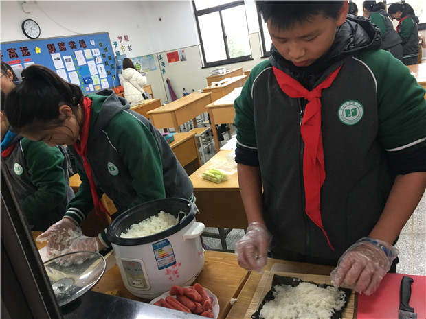 初冬时节,比起深冬的绮丽,秋天的肃穆,蕴藏着一份特别的诗意和生命的韵味。11月30日下午,翠中校园仿佛沸腾一般,一场别开生面、精彩纷呈的爱心义卖活动开始了! 爱心义卖街,大咖云集 夺人眼球的店铺展板,青春活力的叫卖口号,琳琅满目的义卖物品,这是各班组建的传统爱心义卖街。义卖街上,“商业大咖们”热情高涨,使出浑身解数,有的大声吆喝,有的高举宣传板四处叫卖,有的拿着物品到处推销,略带稚嫩的嗓音,传播着爱心的宣言。有的班级还发挥奇思妙想,开动自己的“商业头脑”,组织了各项小游戏以吸引顾客,扔飞镖、套圈、踩气球……还有“买一赠一”,“套环中奖”等促销手段让人眼花缭乱,同学们新奇不已,各个跃跃欲试。一元、五元、二十元、五十元……一点一点善款的累计,获得的不仅仅是金钱上的满足,更是一份帮助他人的成就感与满足感。 美食共享站,实力抢镜 比起传统的爱心义卖街,各班的美食共享站实力抢镜,让人流连往返,目不暇接。缤纷的美食多种多样,色香味俱全,让来往的小食客们垂涎三尺,纷纷难抵诱惑、慷慨解囊。三明治、茶叶蛋、元宵、凤爪、牛排、寿司、辣炒年糕,还有各色西点蛋糕、水果沙拉……中西各色美食,应有尽有,互相PK,看看谁是美食届的C位。孩子们和家长、老师们一同参与,亲自动手,现场制作,在一双双巧手下,玲珑剔透的汤团、香甜可口的饼干、还有童年的味道——棉花糖……味蕾的满足中,同学们一边体验劳动的艰辛和快乐,一边享受亲情、友情、师生情的融合与碰撞,一张张餍足的笑脸,一阵阵欢快的笑声,整个校园都氤氲着欢乐幸福的气氛。 创意便当秀,C位出道 好创意、好故事、好口感、好美观!这是美食观察员们看完“创意便当秀”纷纷发出的感慨。各个班级亲手制作呈上的美食便当可谓是整场活动中的焦点,占得C位,吸引无数师生啧啧称叹。森然熊猫饭团、森香玉兰爪、番茄菠萝饭、粉红猪小妹、虾兵蟹将饭……参赛选手们绞尽脑汁,既讲究荤素搭配,营养均衡,又不忘文化创意,颜值与口味。更打动评委的是美食后的故事,设计中的思考,有和妈妈、外婆共同的记忆,有对校园竹文化的祝福,也有与两三好友友情不散的期待。最是那碗人间烟火,食光不老,我们不散。 知识大竞猜,王者荣耀 真正的吃货除了能吃遍美食,还能拥有丰富的饮食知识与文化。这不,美食知识大赛上,一群小小吃货纷纷前来一展身手,寻找吃货界的诗与远方。饮食故事、饮食礼仪、饮食安全、饮食健康到底知多少?……在竞猜中,孩子们收获了更多的饮食知识,了解了源远流长的中国饮食文化,学习了更为丰富的饮食礼仪,成为了吃货中的“知识小达人”。 初冬的暖阳与同学们的笑脸交织在一起,这场“爱与美食,po一波”创意美食厨艺大赛暨爱心义卖活动真是有意思又有意义,让人意犹未尽,孩子们围绕“食与礼仪文化、食与人际关系、食与爱心创意、食与劳动健康”四个关键词,展开无数的想像力、超凡的动手力、无限的创造力,学习并传递了“节俭、卫生、健康、共享、感恩”的饮食观念,并将募集的爱心款扶助困难同学,创意的碰撞,情感的融合,文化的浸润,共同营造温馨和谐的校园氛围。