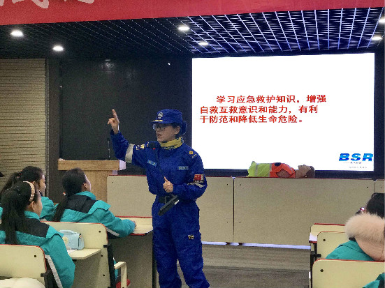 生命是顽强的,有时也是脆弱的,生命中的危险意外和突发事件随时可见。 为了让我们应该学习应急救护知识,增强自救,互救意识和能力,有利于防范和降低生命危险,12月14日下午,蓝天救援中心相关成员为我校七年级志愿者们在校会议室开展了一次急救知识培训活动。 这次的知识讲座让我们了解一定的急救知识和急救方法,更让我们明白了遇到危险时应准备的物品和自救方法,让我们受益匪浅。 这次讲座中,无论是气道异物梗阻的施救方法,还是心肺复苏的救治时长,我们都有了更深层次的了解。 此次讲座中,蓝天救援的医护人员时不时和同学们互动,活跃气氛,也让一些毛遂自荐同学主动上去尝试急救。 此次讲座,不仅让每一位同学更加珍视生命,更是为公益和教育事业多尽一份力。 ——七(8)班李静