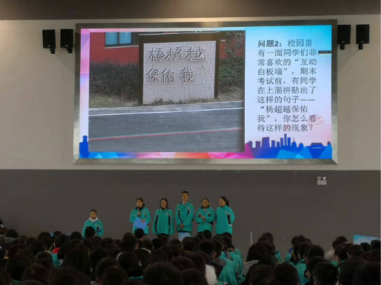 2月17日报到日,常州市翠竹中学全体师生齐聚体育馆,参加“努力奔跑,勇敢追梦”新学期开学典礼。 开学典礼以校园十大优秀学生的选拔为主要内容,七八九三个年级的优秀学生候选人分别从三个流程展示:用小视频展示个人形象,亲切具体;用主题演讲凸显个人才能,优势突出;用现场问答考验个人反应,灵敏直观。三个流程全方位多角度地展现了学生的形象,帮助老师同学更好的了解他们,促进竞争的公平公正,使得优秀学生的形象更加深入人心。 少年强则中国强,少年,是国家的希望,是未来的栋梁。翠竹中学致力于课改,大力发展素质教育,致力于培养更多的有责任感有担当的优秀的社会主义接班人。 这次选拔除了突出候选人的能力,鼓励他们按照要求自主独立的准备展示,更难能可贵的是引导优秀学生关注社会关注学校,引导他们发现身边的问题,并积极思考相应对策。比如:在现场问答环节中,问题的选择来自身边,像家长接送孩子时乱停车现象的解决方法,对校园不文明现象的看法,对所谓校服“潮流”穿法的建议等等。学校希望通过活动,引导优秀学生自觉承担起更多的责任,激发他们的使命感责任感,传播正能量,同时,全方位多角度向老师同学展现优秀学生的形象,有利于增强优秀学生的知名度,树立榜样,增强榜样的辐射强度。 最后,15位优秀学生候选人向在座的师生献上新学期祝福,翠竹中学2019年春学期开学典礼在浓浓的祝福暖暖的春意中拉下了帷幕。(毛乐乐)