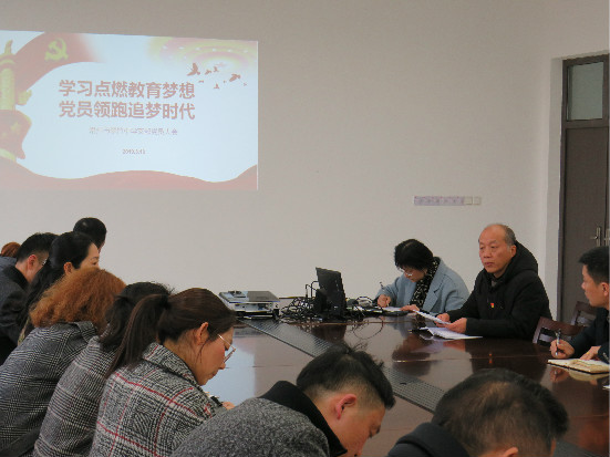 学习点燃教育梦想,党员领跑追梦时代 三月初春,花蕾初绽,暖风拂面。两会时间,举国上下,热火朝天,一片欣欣向荣。 常州市翠竹中学新学期党支部主题党日活动于3月12日下午第三节课一楼会议室应时而开。 2019年是新中国成立70周年,也是学校第五轮主动发展规划的启动之年,2018年大家一起畅谈“幸福是奋斗出来的”,而今年翠中党员将继续深入学习,点燃教育梦想,领跑追梦时代。 会议上,周贵兴书记作重要主题讲话,他指出,新时代,每个党员都应以学习点燃教育梦想,领跑追梦时代。 强学习 重实践 促发展 周书记首先为党员介绍了“学习强国”学习平台,带领大家观看了推介视频,高度评价这是一个内容权威、内涵丰富、特色鲜明的理论学习平台,全面呈现习近平总书记重要思想,拥有丰富的学习内容和资源。他要求每位党员不仅要坚持每天登陆,每天争取更多的积分,还要主动利用好这一优势平台,加强学习,努力做到:以学立德,以学增智,以学促行。通过学习,把“学习强国”学习变成常态,研读教材,分析学生,更新知识,拓宽眼界,不断提高综合素质和工作本领。 周书记还高瞻远瞩地指出,《中国教育现代化2035》为教育工作者规划了前进的方向,明确了工作的要求,作为党员理应走在前列率先行动干在实处,亮出党员身份,做好教师表率,促进教育发展。年初,常州市市委教育工委下发了《关于建设“龙城教育先锋”工程,提升党组织组织力的实施意见》文件,要求每个党组织结合学校党建工作的实际和特色,积极创建先锋工程,为此,支部将在党员中,开展“亮身份、展形象、当先锋”活动。 亮身份、展形象、当先锋 1.佩党徽,亮身份。支部提倡党员平时佩戴党徽,并要求在重要活动、正式场合中佩戴党徽,时刻提醒自己不忘初心,不负誓言,接受师生监督,强化自身的责任意识、自律意识和党性意识,树立党员良好形象。 2.示范岗,展形象。制作发放党员先锋岗。一个党员是一面旗帜,把党员身份亮在工作岗位上,把先锋承诺公示在师生中,在学习、工作、生活中发挥先锋模范带头作用。 3.项目组,当先锋。党员项目组活动是学校党建工作的亮点和创新点,去年党支部根据学校发展的实际,立足教育教学本职岗位,重新划分了党员项目组,围绕教育教学、教师成长、新校建设、校园宣传等方面进行了分工。在项目组的建设中,全体党员发挥各自的特长和优势,带头学习提高、带头争创佳绩、带头服务群众。 项目组优秀党员代表康爱琴老师发言交流了上学期作为党员教师如何发挥示范作用,积极实践,感动着与会每一位老师。 本学年项目组进一步完善和党员的先锋岗相结合,分成四大组育人先锋、专业先锋、志愿先锋、服务先锋,鼓励党员充分利用自身的特长和优势为师生、学校、社会服务,发挥党员的先锋模范作用。 会议在全体党员的的铮铮誓言中圆满结束。全体党员将不忘初心,加强学习,敢于担当,在教育的道路上砥砺奋进,做个充实的教育追梦人!(尹翔翔)