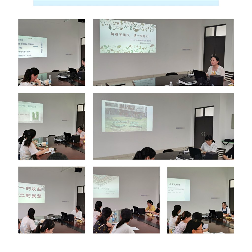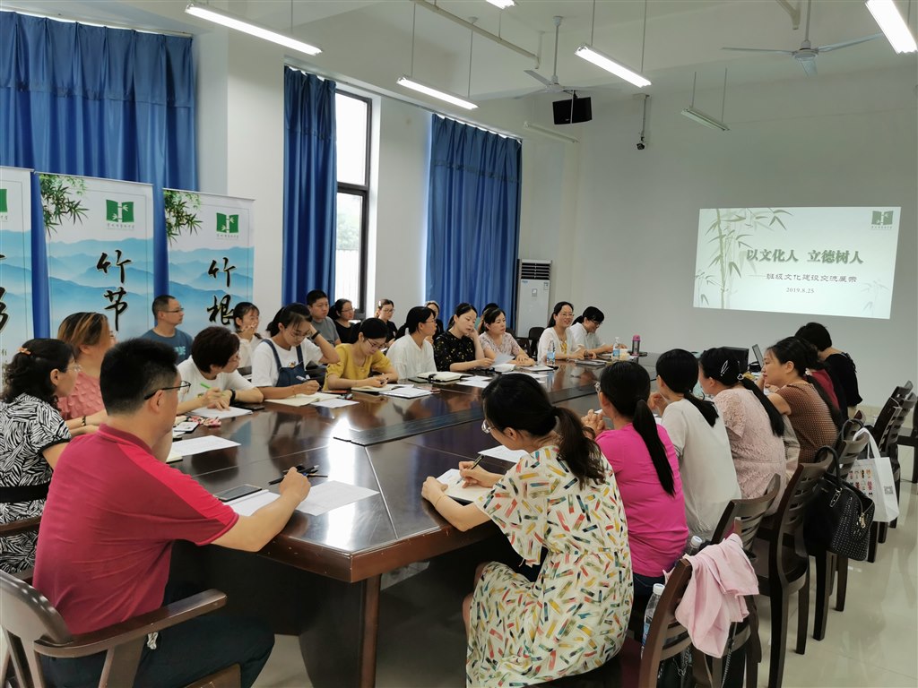 8月25日上午,翠竹中学举行了暑期班主任培训。新八九年级班主任用精彩的案例,丰富的图片,系统的思路展示了在过去的一年中班级文化建设中的思考及尝试。 秉持着让每个物件会说话,让每个角落都发光的教育思想,老班们结合各班的实际,通过外在的班级环境布置,打造温馨、励志又极具班级及个人魅力的硬件设施。又富有智慧的通过思想引领,依托系统、丰富的班级活动打造极具人文性、创新性的文化软环境。 18位班主任各有治班法宝,或是情感导向,以情动人、以情感人、以情育人;或是常规扎实,用踏踏实实的行动带领学生学会有序及责任;或是活动丰富,以多角度、多领域的校内外活动打造活力班级、魅力班级…… 汇报结束后,丁文黎副校长肯定了班主任们的努力:有主题、有思考、有条理、有进步,丁校长强调说,要做智慧型的班主任,其中七年级定规范养习惯,八年级从规范到规划,继续打造以班主任为核心的家校共同体。 陈文伟校长听了班主任们的展示汇报,融合班主任们的发言,总结了九个“有”:有理念、有思想、有内涵、有规划、有目标、有路径、有创新、有评价、有实效,并提出了殷切希望:1、学习,平时过程中厚实自己,取长补短,博采众长。2、合作,工作中具有团队意识,提前准备。3、有主线,要从长远思考班级发展。4、合力,班主任应当与班干部、科任老师、家长合力,建设共性与个性相结合的班级文化。 文化孕育成长,一言一语总有意,一枝一叶总关情。翠竹中学的班主任们将在校领导的带领下继续为学生的成长发展群策群力,保驾护航。(王萍、任宁)