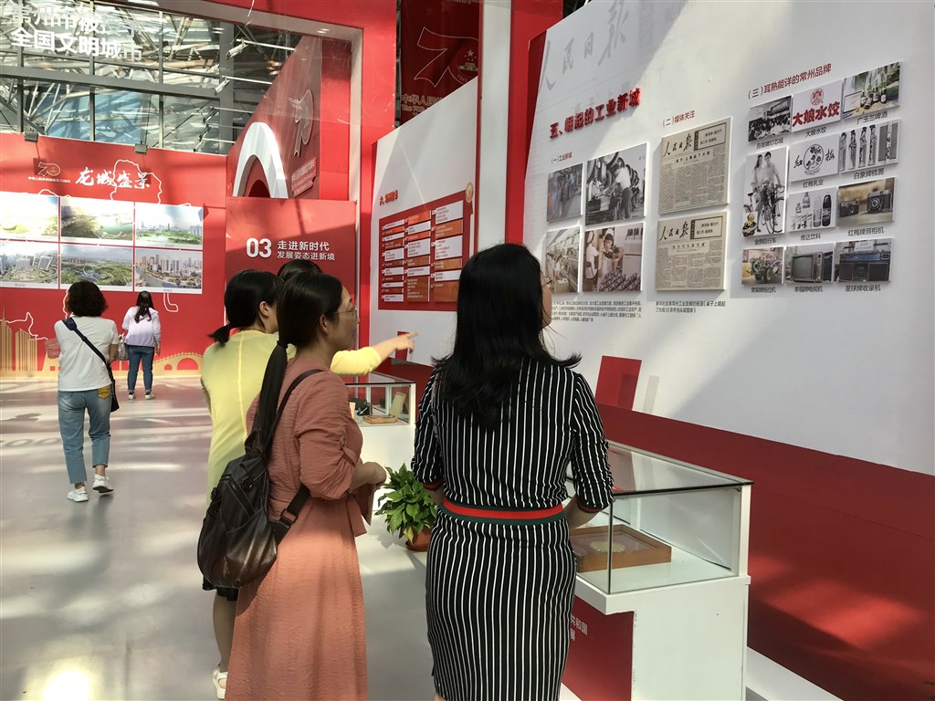 图片展分序厅、砥砺前行辉煌成就、智能互联工业明星城、近悦远来旅游明星城、智慧城市管理明星城、幸福家园美好生活、伟大工程党建新气象、道德讲堂等7个专题展厅和辖市区及经开区的7个地区展厅。沿着规划好的参观路线行进,师生感受着常州日新月异的变化,既有往昔回忆,也有高科技展示,更有互动项目,让人啧啧称赞。