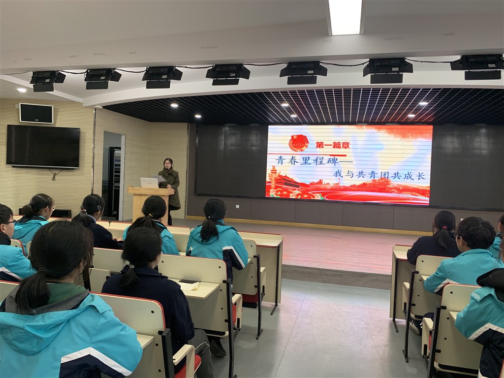 第一篇章“青春里程碑—我与共青团共成长”中,全体学员观看共青团的光荣历史介绍视频,在历史的光影中一同走近共青团、了解共青团。