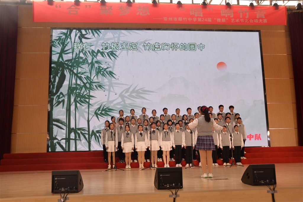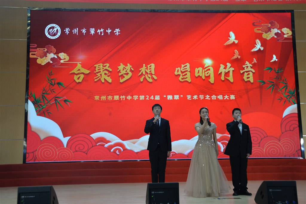 岁暮天寒、玉树银花,流光忽逝,新年将至。翠竹中学的师生们迎来了一年一度盛大的“雅翠”艺术节之合唱大赛。12月30日下午,七八年级师生及家长代表齐聚体育馆,共享这场艺术的视听盛宴。本次文艺汇演同步在线直播,众多家长及社区人员在线观看,点赞过千。 《歌唱祖国》深情地传达着对祖国的赤诚爱意,《我和我的祖国》像海和浪花一般诉说着对祖国的无限眷恋。回望百年之前,青纱帐里、万山丛中,游击健儿以血肉之躯保卫黄河、保卫中国,气势磅礴的《保卫黄河》歌唱着中华儿女无比坚定的信念。 热情洋溢的《青春纪念册》吹响青春的号角;朝气蓬勃的《奔跑》带来希望,感受梦想的力量。少年永怀使命,一首《少年》道尽少年的责任与担当,正如《真心英雄》所唱:把握生命里的每一分钟,全力以赴我们心中的梦。少年是国家的未来,民族的希望,每一位翠中学子都勇担责任与使命,怀着梦想与希望,扬帆起航,以青春之我,创造青春之家庭,青春之国家,青春之民族,青春之人类。 在翠中学子们精彩纷呈的表演之后,老师们也为舞台增添了浓墨重彩的一笔,男教师们以浑厚铿锵的嗓音,将拳拳赤子心融入歌声,深情歌唱《祖国不会忘记》,女教师们用婉转动听的歌声诉说着对明天的美好期待,相信《明天会更好》! 屠国斌副校长对此次合唱大赛表示肯定,表明此次合唱大赛是对新校落成的献礼;是在“双减”背景下, 学校实施五育并举、促进学生全面发展的重要举措;是学校“以竹文化培根,发展有灵魂的教育”的办学理念的彰显。他代表学校感谢各位班主任和音乐教师精心组织排练,感谢各位家长朋友的鼎力支持和全体同学的积极努力!正是有了家长和教师的通力协作,才使得合唱比赛如此精彩! 箐箐校园,竹音嘹亮。让我们用燃烧的青春,让美丽的翠中校园凯歌嘹亮! 撰稿:张涞 拍摄:田盈 审核:单斐