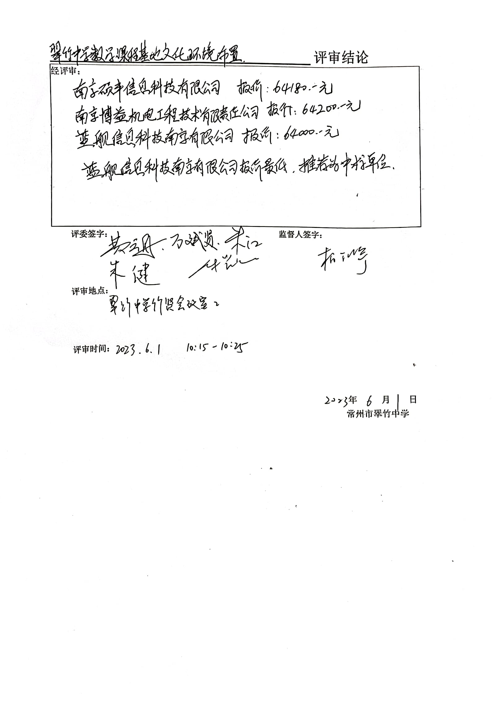 常州市翠竹中学省数学课程基地教具、文化设计,图书馆编目项目招标公示