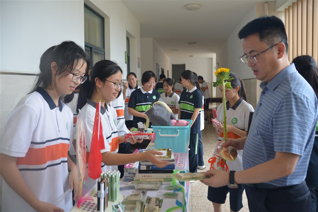 “龙”启新章,青春拔“翠”,2024,我们开启腾龙之姿: 谦雅少年,精彩的开学礼,非遗糖画的甘与甜,你还记得吗? 追锋热血,缤纷的志愿节,明媚春天的他和她,你还记得吗? 活动润心,温暖的生命月,青铜葵花的笑与泪,你还记得吗? 吾越担当,有趣的劳动季,校园田间的奔与忙,你还记得吗? 舞蹈竞赛,花开绽放时的热辣滚烫是青春, 自信舞台,阳光下奔跑的飞驰梦想是青春, 学习课堂,日夜奋战苦读的沉淀蜕变是青春。 爱心传承、不畏艰难、团结奋斗……处处闪耀着翠中人的青春记忆。 合上记忆的封底,翠中2023-2024第二学期休业式正式开始。回首劳动月的精彩,休业式伊始,学发处宣读并表彰了一批优秀志愿学生及班级。而后学校特别邀请了翠竹派出所的汤警官来为同学们做法制安全教育讲座。暑假期间,青少年溺水、交通事故等安全问题易发多发,汤警官结合视频、案例多种形式,以幽默的表达、精要的点评,积极和孩子们互动,让安全、法制观念深入人心。最后,学发处谢笑老师以“有序、有为、有力”三个关键词,结合暑期活动再次动员,寄语同学们都能度过一个有意思且有意义的假期。 最激动人心的时刻来了,随着广播响起,校园沸腾起来。爱心义卖正式开始! 走廊上是熙熙攘攘的人群,还有此起彼伏的叫卖和欢笑。 此次义卖最大的卖点是劳动与创新~ 最哇塞的,流动的水墨彩漆,晕染洁白的纸扇,色彩穿插交错随机而成,山川水影跃然扇面之上,指尖翻飞中一把把独一无二的漂漆扇作品就此诞生。一面像七彩丹霞,一面像陇上江南,同学们在动手和体验中传承非遗文化。 最诱人的,各色缤纷的美食纷纷上新。现场凉拌调制的冰粉、手制无添加的饼干蛋糕、杨枝甘露……还有健康时代最受追捧的“瘦身轻食”,荞麦面、黄瓜丝、水果沙拉……真是让人垂涎三尺。 最有趣的,还有不同班级“大显身手”的手工制品,针线编织的花朵、娃娃、扇子,拼搭而成的积木,手工DIY的发卡、花环……真是“五花八门”,创意“层出不穷”。 个性化的展板与海报,可爱又丰富的装饰,玩具、书籍、文具各色义卖品,无不凝聚着孩子们的真诚和爱心。 劳动与创新、尊重与欣赏,奉献与担当,爱心与传承……此次爱心义卖活动用独特的形式让同学们在劳动实践中获得成长,滋养善意,感受爱、传递爱! 载着淘来的物品,载着劳动的快乐,载着美好的憧憬,载着成长的收获…… 让我们一起奔向下一站,更美好的征程。
