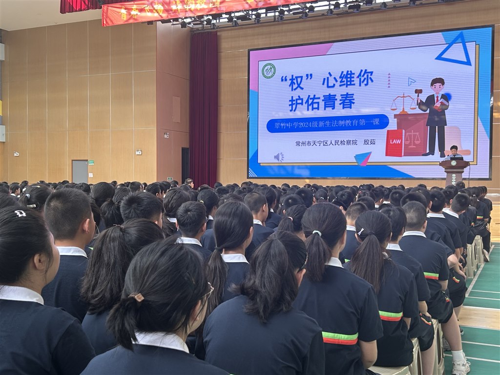 与激情相伴,与青春相逢!夏令营的最后一天,看看萌新们的闪耀初中什么模样吧! 点亮心灯,护航成长 为了增强学生的法治意识,学校特别邀请了天宁区人民检察院未成年人检查室一级检察官殷茹女士为新生们带来了一场生动有趣的法治讲座。殷检察官以案说法,深入浅出地讲解了青少年常见的法律问题,引导学生们树立正确的价值观和法律观念,告诉每一个少年的你 自我保护的意识和方法。严守底线,敬畏规则,阳光成长,为孩子们的健康成长保驾护航。 团结协作,绽放青春 夏令营的核心环节之一便是丰富多彩的班级活动。各班级在班主任的带领下,开展了形式多样的团队建设游戏、才艺展示和主题班会等。通过这些活动,新生们迅速打破了初来乍到的陌生感,建立了深厚的友谊,增强了班级凝聚力。他们在欢声笑语中学会了沟通与合作,展现了青春的风采与活力。 灿烂青春,一起出发 汗水、欢笑、希冀……三天的点滴都化作回忆留在心间。结营仪式上,七年级年级组长屠琍老师宣读优秀营员的名单,课程发展处卫萍主任、校工会朱江主席为他们颁奖。随后优秀营员以连队为单位参加知识竞赛。迅速、准确的回答,礼貌、自信的姿态,给观众留下深刻印象。 激动人心的队列武术展演终于到来。整齐划一的步伐和精准有力的动作展现出了军队般严明的纪律和团队的凝聚力。 结营仪式上陈文伟校长发表了鼓舞人心的致辞。他高度赞扬了同学们的优秀品质,同时寄语同学们将三天时间的所学、所悟常记心中。他鼓励同学们做到“六个学会”:学会自信、学会改变、学会坚持、学会反思、学会宽容、学会自律!让“六个学会”成为一种内在修养。 结营仪式在同学们振奋人心的校歌歌声中落下帷幕,竹音嘹亮,唱响青春。 “青春汇翠新征程,拔节竹梦共灿烂”翠竹中学新生夏令营活动在欢声笑语与不舍中落下帷幕。这不仅仅是一次简单的夏令营体验,更是一次心灵的触动和成长的见证。相信在翠竹这片沃土上,每一位新生都将如翠竹般茁壮成长,用青春书写属于自己的辉煌篇章。 从今天起成为一名翠中人! 在翠中, 你会更加坚信心中的热爱! 趁着青春的光, 趁着竹园的风, 做一颗努力闪耀的星辰! 撰稿:柏佩婷 审核:谢笑