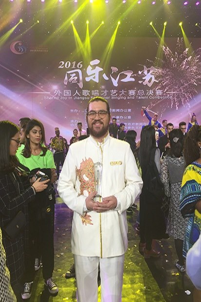 经过激烈的角逐,万众瞩目的2016“同乐江苏”外国人才艺大赛总决赛于近日在江苏广电总台电视演播剧院举行。常州市翠竹中学外教胡瑞泰作为常州唯一入围总决赛的选手参加了总决选。 “同乐江苏”外国人歌唱才艺大赛已经成功举办六届,受到了社会和媒体的广泛关注,丰富了在苏外籍教师和学生、外国友人的文化生活,凸显了“开放江苏、和谐江苏、同乐江苏”的社会氛围,有效提升了江苏的国际影响力。今年的外国人歌唱才艺大赛也是精彩纷呈,通过“同乐江苏”大型舞台全面展示外国友人所热爱和擅长的中华才艺,包括歌舞、豫剧、京剧、器乐、歌唱、歌曲联唱、说唱等共有12个节目。 胡瑞泰着一身饰以金色龙纹的白色中式服装,深情演绎《千年游》,字正腔圆的发音,投入的表情,浓浓的古典中国风扑面而来。胡瑞泰的精彩演出博得阵阵掌声,获得“最佳表演奖”。(毛乐乐)