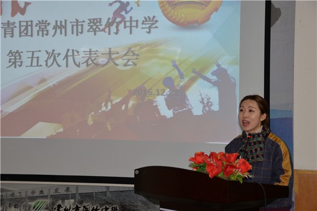 星星火炬,点燃年少的梦想,团旗飘扬,汇聚青春的力量。2016走向尾声,新一年的钟声即将敲响,在此新旧交替之际,翠竹中学隆重举行了共青团常州市翠竹中学第五次团代会,这是学校团工作发展的一座里程碑,也迎来了成长的新起点。出席本次会议的有教育团工委姚奕副书记、兄弟学校团委书记、全体校领导、工会主席,还有部分团员教师代表、68名团员代表及24名少先队代表。
