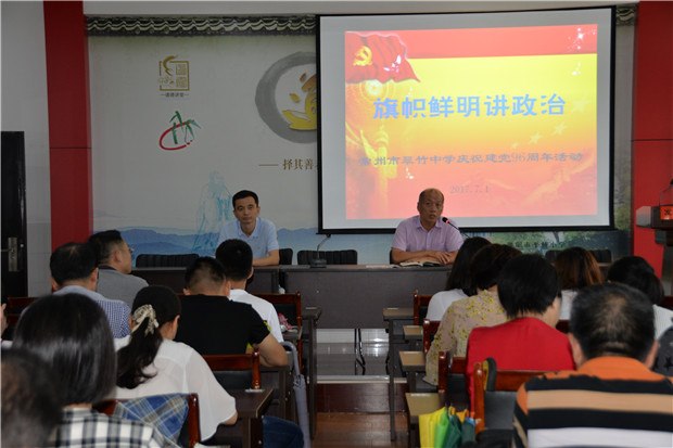 之后借平桥小学的报告厅,学校周贵兴书记对全体党员作了题为“旗帜鲜明讲政治”的小型党课。周书记围绕怎样做好合格党员对全体党员做了要求:希望全体党员做到四讲四有,做到强化政治意识,保持政治本色;向党中央看齐,做政治上的明白人;践行党的宗旨,保持公仆情怀,加强党性锻炼和道德修养,落实防腐拒变的防线。全体党员同志要做到政治合格,执行纪律合格,品德合格,发挥作用合格。切实履行好应有的义务和责任,在假期里要进一步加强学习,做好学习笔记,时刻牢记师德师风,模范遵守各项规章制度,做一名合格的党员教师。