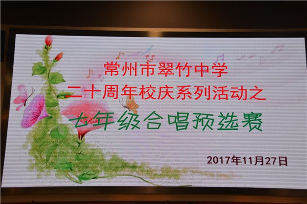 为更好地推进素质教育,丰富校园文化,营造积极向上、清新高雅、健康文明的校园文化气氛,增强学生的团队意识和集体荣誉感,常州市翠竹中学于20171127日在体育馆举行了七年级“唱响校园.放飞梦想”的合唱比赛。