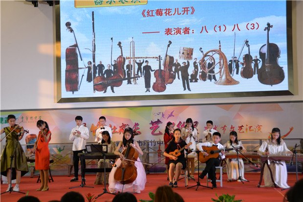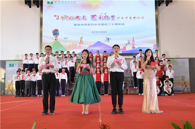 “竹壮成长,艺彩纷呈”艺术节文艺汇演已连续举办三届!这是一个学生们大显身手的舞台,主持、唱歌、跳舞、绘画、乐器……个个都秀出自己的才艺!这是一个彰显青春活力的舞台,无论是活力四射的歌舞,还是创意十足的小品年代秀,处处都展现了翠中学子们的无限创意!这是一个饱含真情的舞台,当艺术节遇上了20周年校庆,学生用青春朝气向学校送上祝福,老师们用默默付出对学校道一声感谢!最真、最美的祝福送给您——我们的翠竹中学!