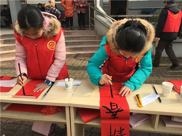 翠竹中学馨竹义工队的成员们在欢乐寒假的第一天,便开启了寻找精神财富的奇妙旅程。 “老吾老以及人之老,幼吾幼以及人之幼。”扶弱助残、尊老爱幼是我们中华民族传承至今的美德。新年来临之际,前往翠竹寿星宫、慰问老人是我校义工服务的传统项目。小小志愿者们希望能让老人们在春节前就感受到春节的热闹氛围,让他们在寒冷的冬天也能感受到我们“火”样的快乐心情。 看,孩子们挂着兴奋又紧张的笑容,大笔挥毫,龙飞凤舞,一幅幅洋溢着新年喜气的春联跃然纸上。“喜居宝地千年旺 福照家门万事兴”……厚厚的一叠红纸上浸满了我们浓浓的节日祝福。寒风下孩子们顾不上微微冻红的小手,认真书写的模样、稚嫩却工整的字迹,那一幅幅红彤彤、散发浓浓墨香的春联,得到了老人们的阵阵夸赞与好评。 瞧,一个个亲手捏成的饺子,一盒盒精美的礼盒里装着孩子们准备的糕点,甜甜的豆沙,圆圆的老婆饼,脆脆的麻花,软软的蛋糕,小心翼翼地递给老人们,温暖老人的胃,更甜蜜老人的心。