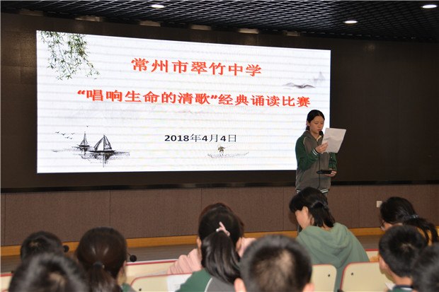 为弘扬中华民族优秀传统文化,提高初中生的人文素质和道德情操,推动校园文化建设,4月4日下午,翠竹中学在报告厅组织进行了七年级“唱响生命的清歌”经典诵读比赛。 本次比赛共有七年级8个班级参与其中,七(1)班朗诵《中国梦》,七(2)班朗诵《我骄傲,我是中国人》,七(3)班朗诵《木兰诗》,七(4)班朗诵《青春赞歌》,七(5)班朗诵《回放的生命》,七(6)班朗诵《生命与四季》,七(7)班朗诵《中国.梦》,七(8)班朗诵《再别康桥》。 各班积极准备,利用课余时间认真排练,4月4日下午3点30分,比赛终于在众人的期待中拉开了帷幕。比赛现场,选手们以其铿锵有力的气势,充沛饱满的感情,自信大方的形象赢得老师和同学们的阵阵掌声。比赛内容和形式更是丰富多彩,有的朗读千古传颂的名篇,让我们在精简的语言当中解读古人的英伟事迹;有的表达爱国之情,激励全体学生爱国爱校的热情,牢固树立爱国之心,强国之愿、报国之志;有的歌唱生命,轻悠的配乐中,吟诵者带领着我们走进诗人的心田,去领悟诗人心中的美好感情;有的歌颂青春,引导同学们珍惜青春,勇敢拼搏......舞台的灯光映照着每位同学青春的脸庞,充满感情的旋律流淌在报告厅的每一个角落,朗诵者们用他们或温情唯美或跌宕深沉或激情昂扬的声线牵动着每一个人。 时间悄悄地将比赛推到了尾声,最后,谢笑老师为我们总结评价了这场比赛,向大家阐述为什么要诵读,以及诵读的技巧。 本次比赛在热烈的掌声中圆满结束,通过这次比赛,不仅丰富了同学们的课余生活,陶冶了大家的情操,同时也提升了同学们对传统文化的认识,进一步感受了传统文化艺术的魅力!