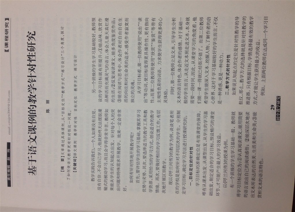 发表论文——《基于语文课例的教学针对性研究》陈丽