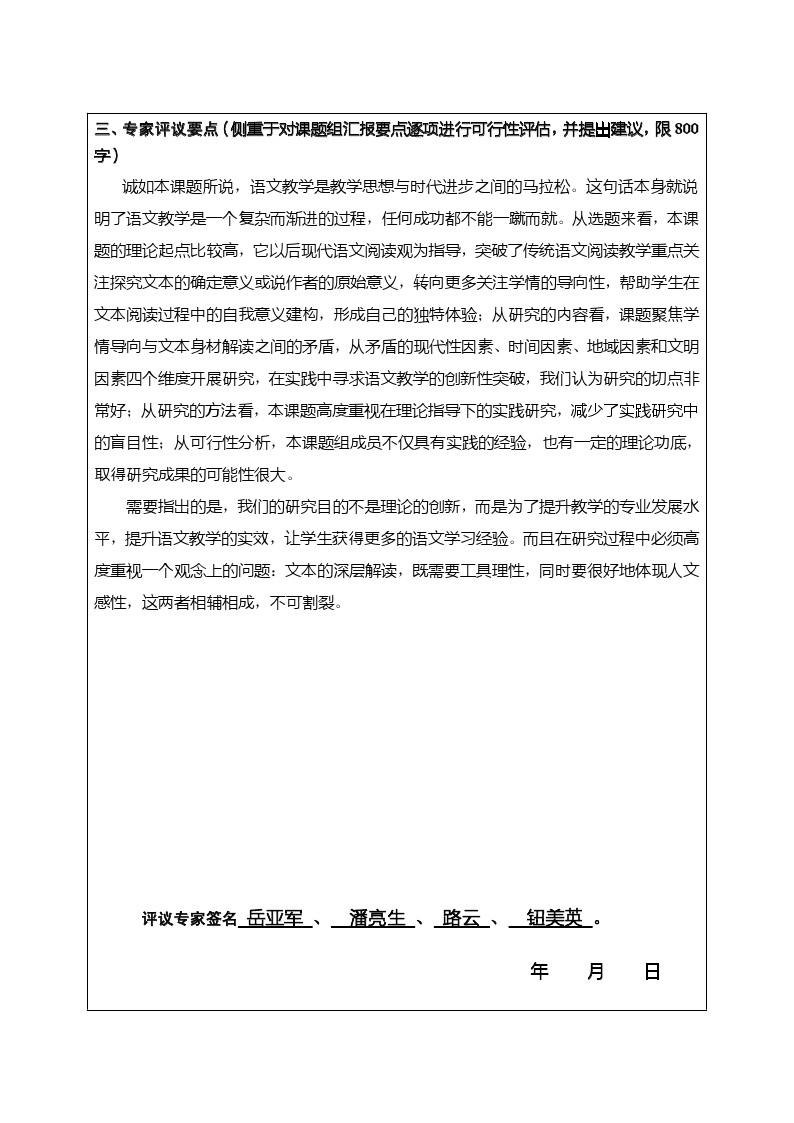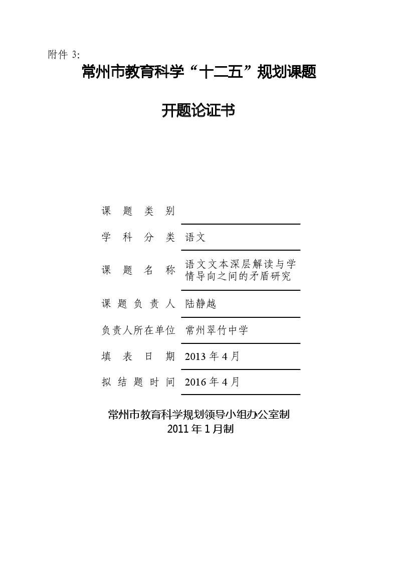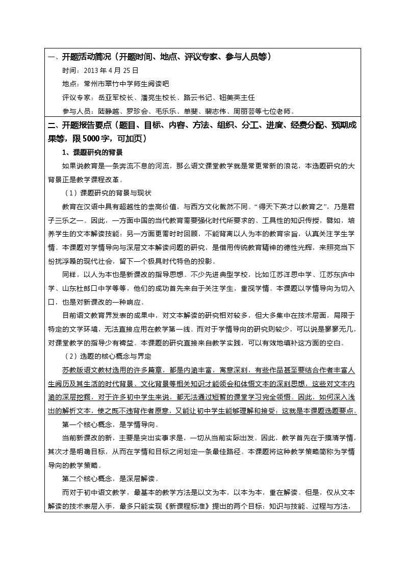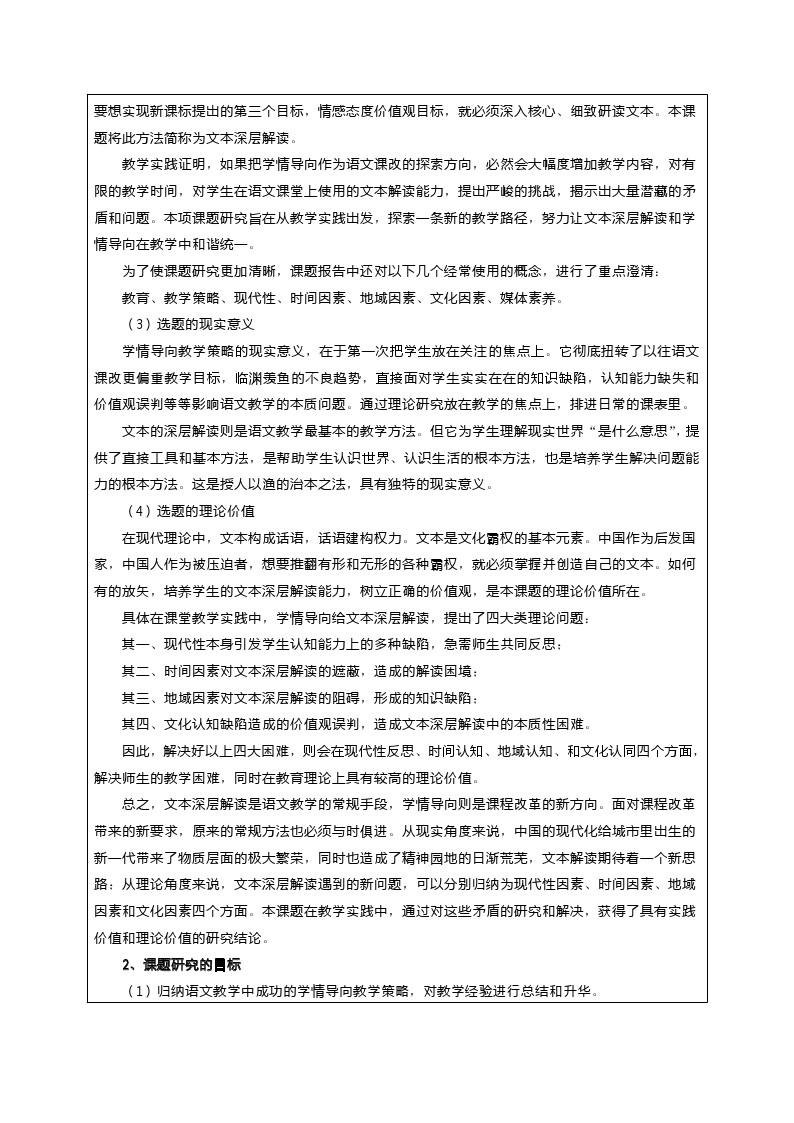 《语文文本深层解读与学情导向之间的矛盾研究》开题论证书