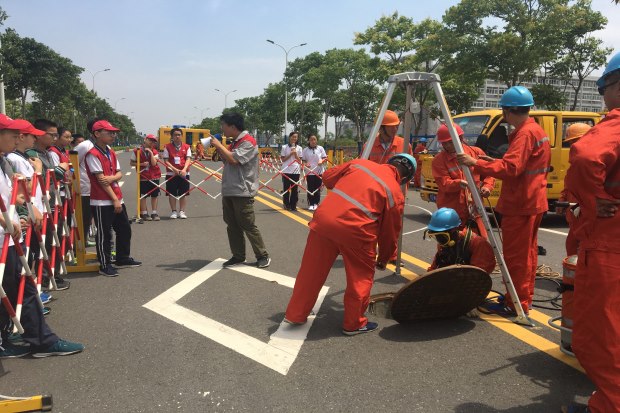 了解一代代更替发展、型号多样的排水井盖,观看抓斗车如何从管道中抓取垃圾;或是亲手操作cctv机器车进入管道,或是戴上潜望镜,观察管道内部结构;甚至登上工程车,细细了解应急排涝作业的工作原理,穿上下井工作服,感受下井作业工作者的艰辛与不易。